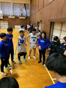 スピードもフィジカルも勝る半田高校との新チームになって2度目の対戦になりました。スタートにディフェンスは頑張りましたが、なかなか相手のディフェンスを崩すことができず、点を取ることができませんでした。そこからリズムが狂い始め、第2クォーターで大きく差を広げられてしまいました。ハーフタイムで修正点を話し合い、オフェンスのリズムを少し取り戻すことはできましたが、力及ばす、敗戦となりました。