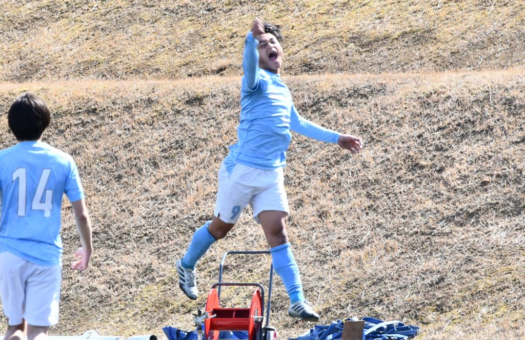 前半の入りから選手たちはゴールを奪いに、積極的に前に出ていきました。相手の攻撃もしっかり受け止めながら、すぐに攻撃に転じるテンポの良い攻撃で相手ゴールを目指しました。前半17分、ディフェンスの空いた瞬間を狙われて、先制点を奪われました。しかし、前半34分、仲間からのパスにうまく合わせてボールをゴールにねじ込んで同点に追いつき、そのまま前半を折り返しました。