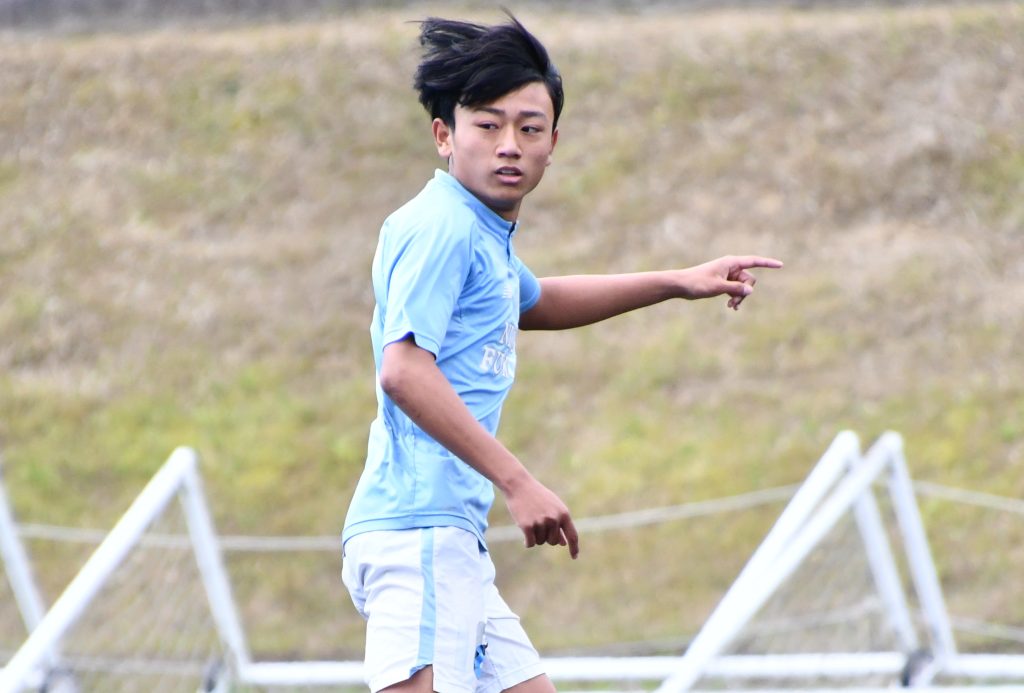 前半の入りから勢いのあるプレーで、相手を押し上げていきました。しかしボールを前へはつなぐものの、なかなか最後まで決めきれない時間が続きました。前半34分、攻守の早い切り替えから一気にゴール前飛び出して、待望の先制点を決めました。また、その後にはPKをもらい、これも確実に決めて前半をリードして折り返しました。
